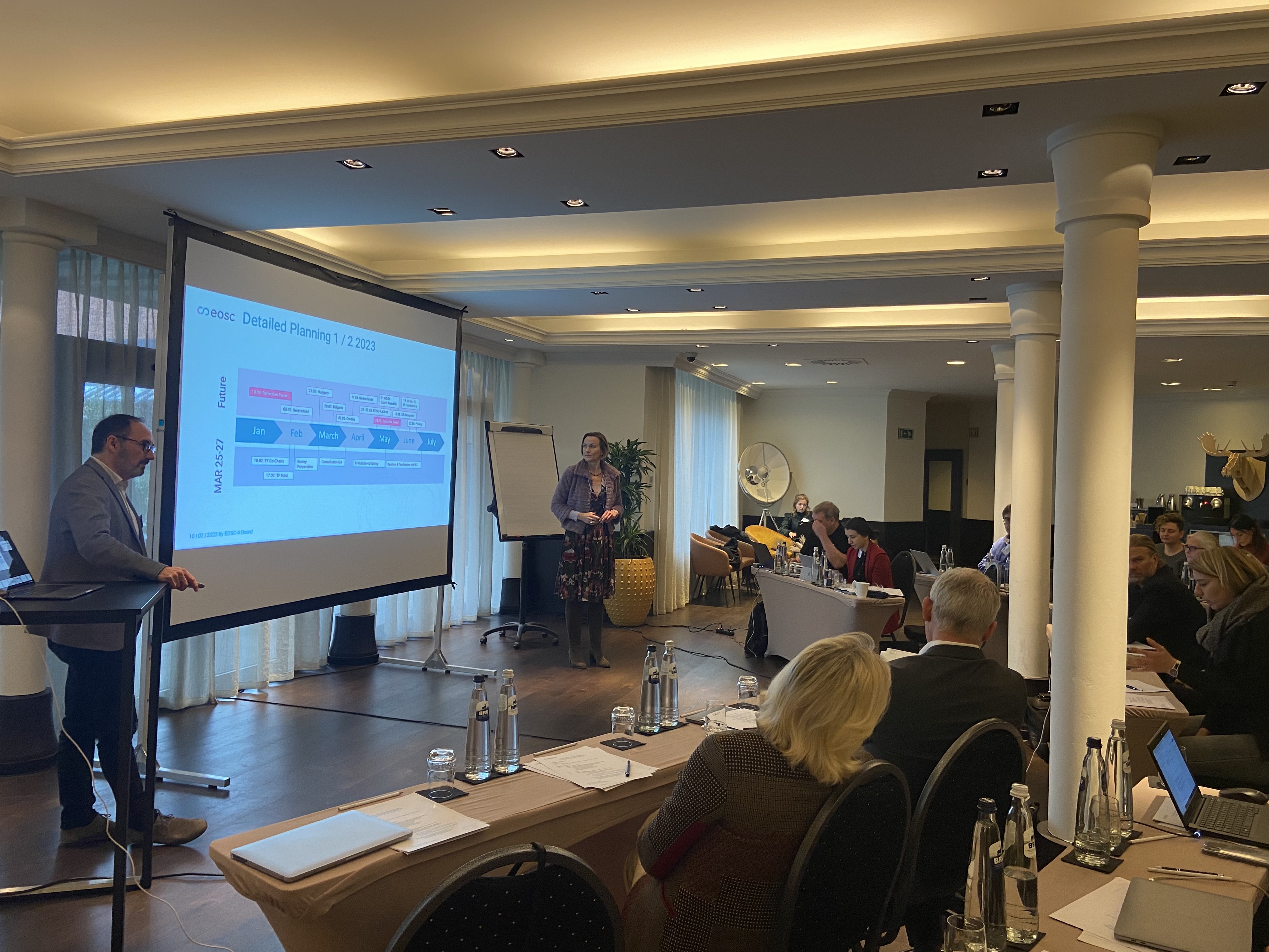 An in-person meeting of 22 EOSC Association (EOSC-A) Task Force co-chairs and seven of the nine members of the EOSC-A Board of Directors took place on Friday, 10 February, in Brussels. Also on hand were representatives of the EOSC-A Secretariat, including the newly minted team of six Task Force support officers (TSOs), who were on-boarded in December of last year.
